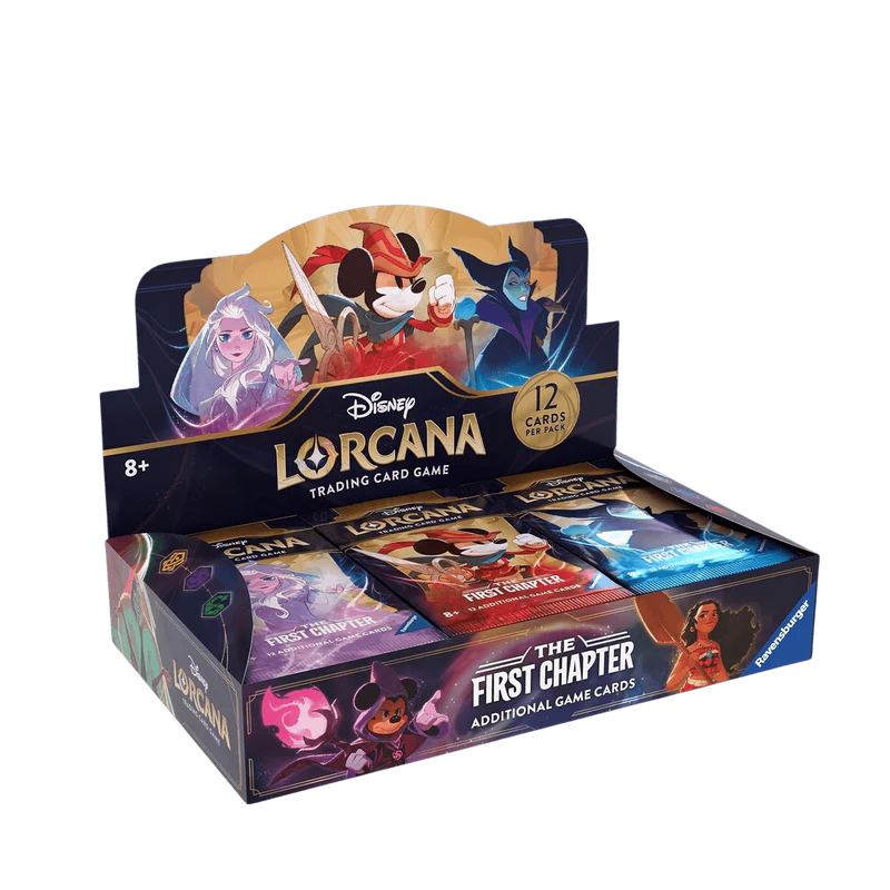 Lorcana TCG Booster Boxes contain 24 Booster Packs. Each booster pack contain twelve random cards from Disney Lorcana: The First Chapter. Use booster packs to build and customize your deck with abilities and characters beyond those found in starter decks.