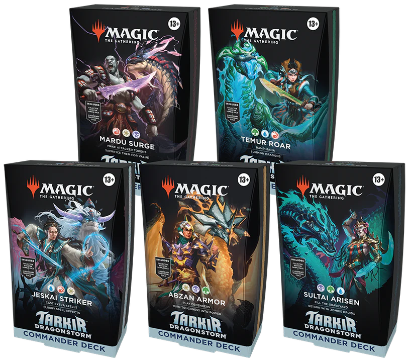 • The five clans of Tarkir are back: Azban Armour, Jeskai Striker, Sultai Arisen, Mardu Surge, and Temur Roar. Discover which clan fits your playstyle with distinct three-color gameplay.