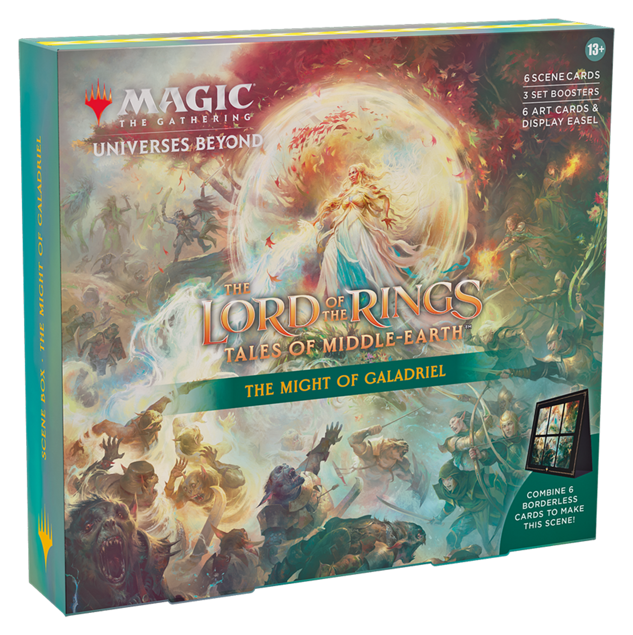 IMMORTALIZE EPIC SCENES - Each The Lord of the Rings: Tales of Middle-earth Scene Box contains 6 foil Borderless cards with art that combines to showcase one of the most epic scenes from The Lord of the Rings