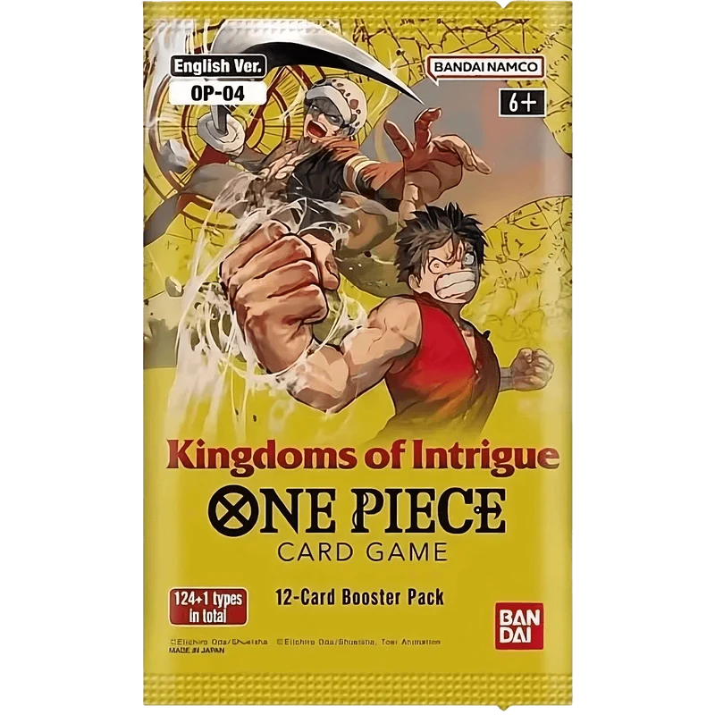 Each Kingdoms of Intrigue Booster Pack contains 12 random One Piece TCG Cards from the release.