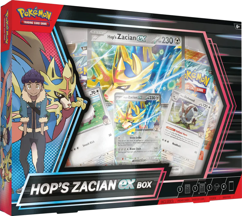 The Pokémon TCG: Hop's Zacian ex Box includes: