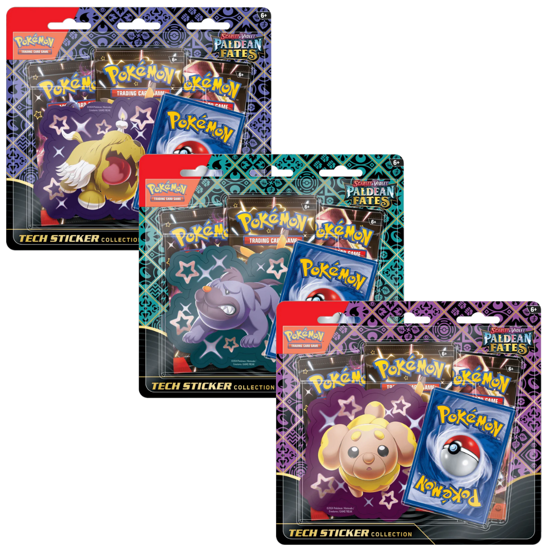 Each Pokémon TCG: Scarlet & Violet-Paldean Fates Tech Sticker Collection includes: